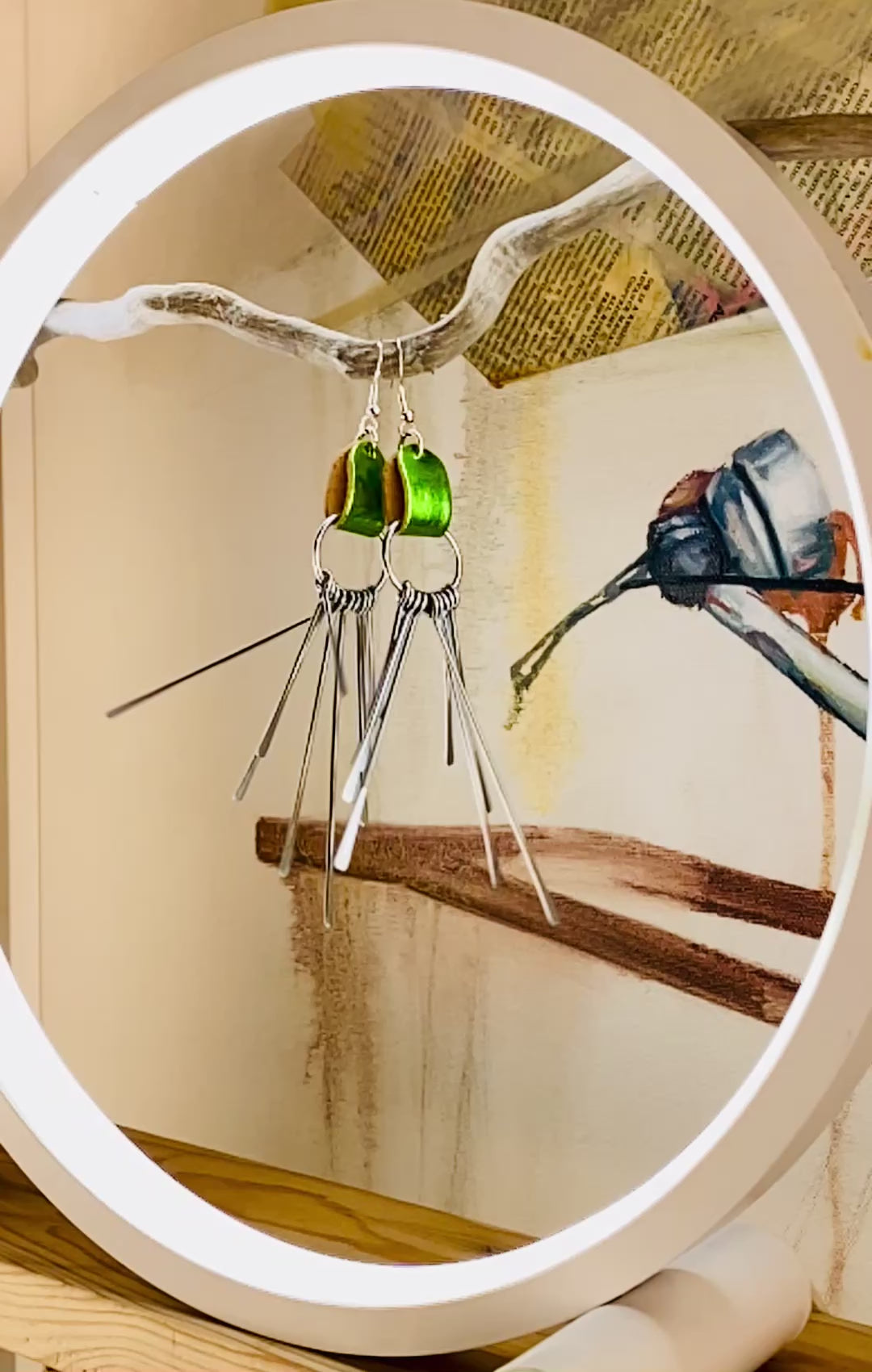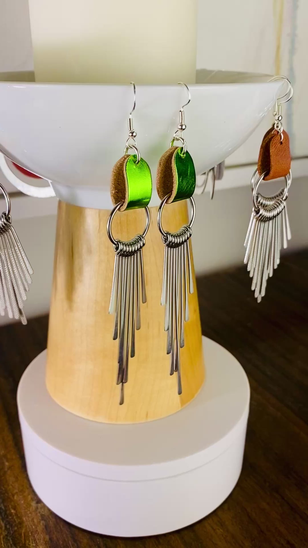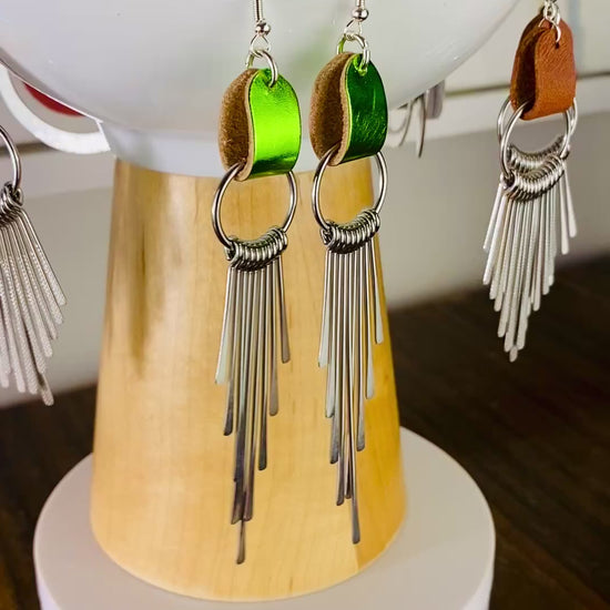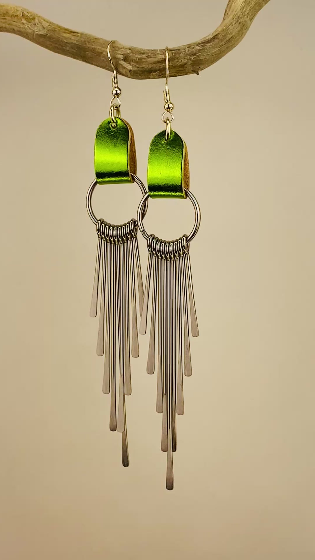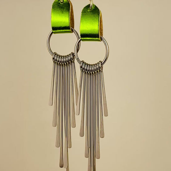 Metallic lime green and silver earrings. Dramatic. Elegant. Cool.